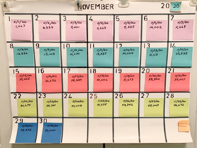 1,667 words per day for 30 days.