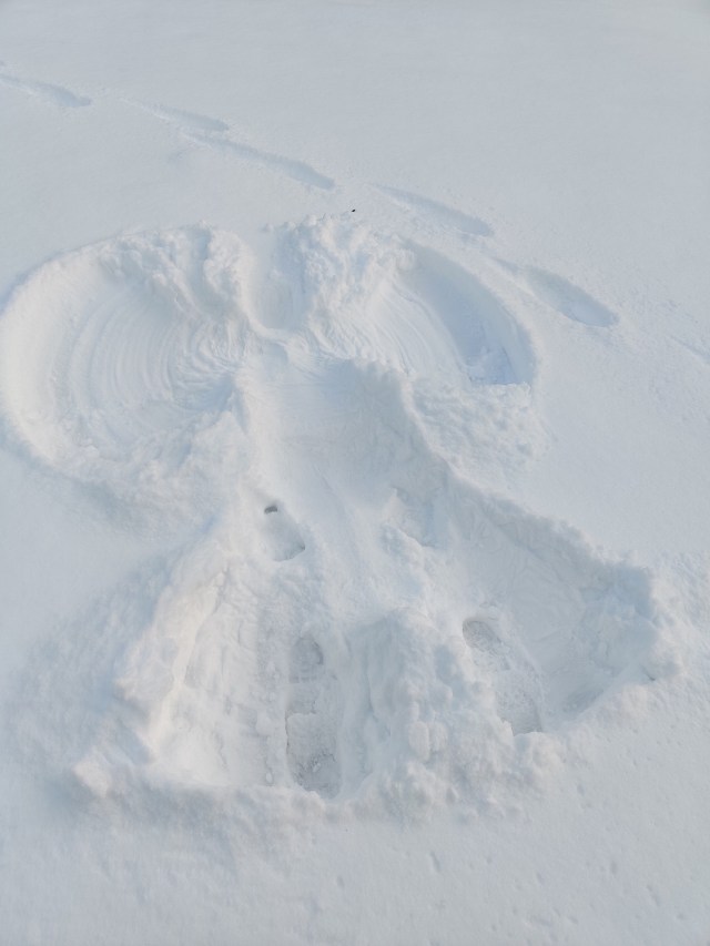 I lay and flap in crystal white, my shadow, now a sparkling angel.
