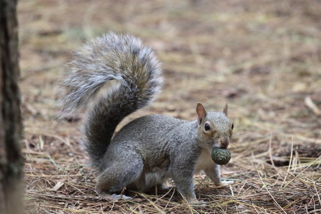Squirrels scamper across lawns, vigorously tamping nuts into the earth.
