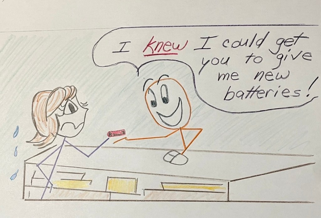When my husband recounted the incident to me, I promptly turned it into a comic strip, hoping to capture this “bit of funny” for others to enjoy.